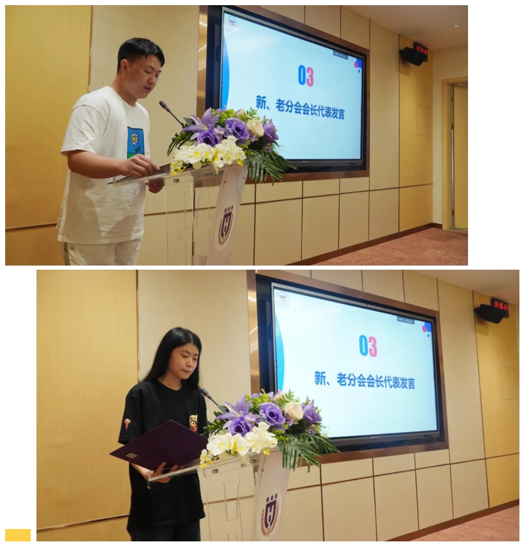 两位新任会长分别上台致辞,他们表示刚从华美学子身份转变华美校友,无比开心和激动。深知这不仅是一份荣誉,更是对自己的肯定与信任,也是一份光荣的责任。他们将以满腔的热情、务实的作风,与每一位校友携手共进,共同推动校友会事业的蓬勃发展。