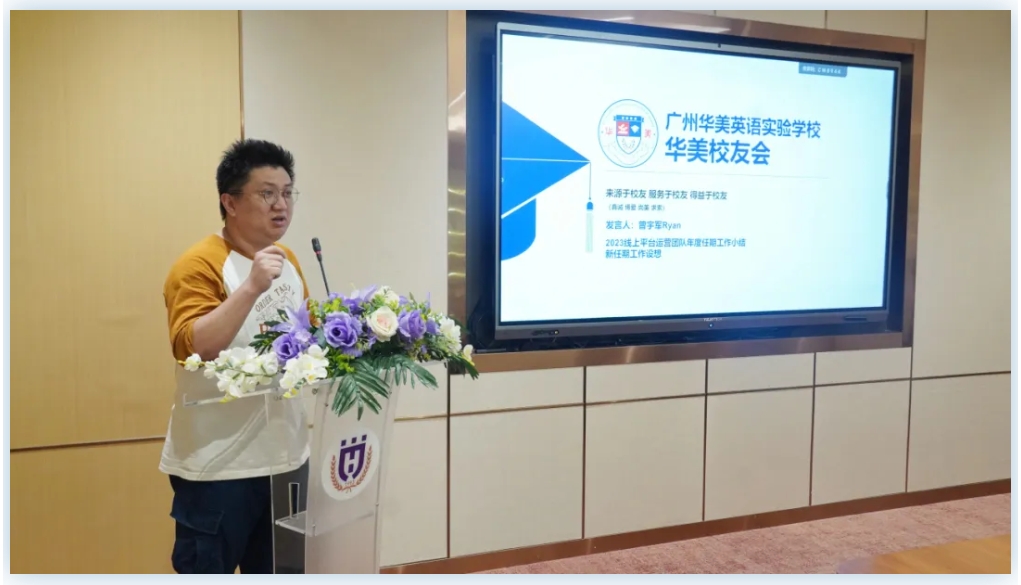 华美校友会线上平台运营总监曾宇军做年度工作小结,以及新的年度工作设想,在过去一年,华美校友会线上平台运营重新整理校友会抖音平台,开设视频号,从以往文字推文的校友采访到视频采访,更具互动性。他们希望接下来创设更多更具活动性的推广,让更多校友关注,搭建出更好的校友交流平台、展示平台。