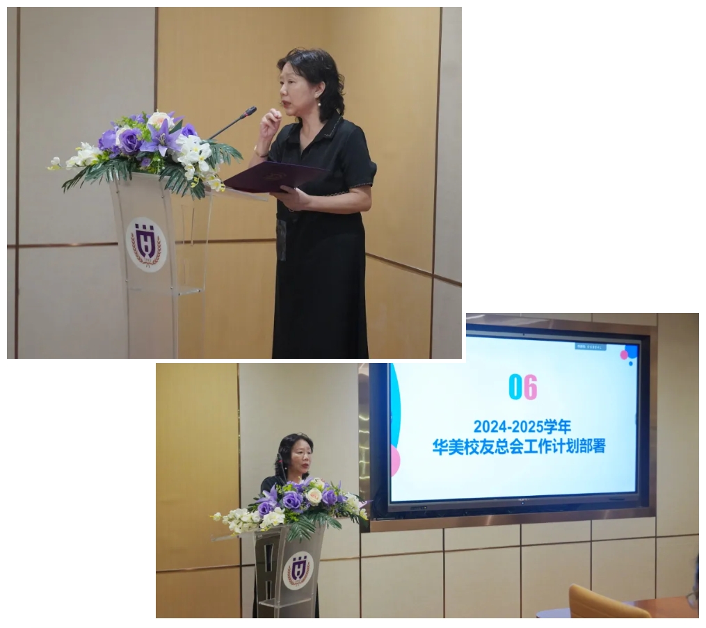 华美校友总会熊嘉会长上台作2024-2025学年华美校友总会工作计划部署