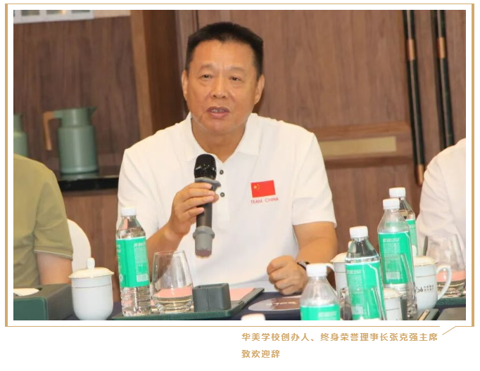华美学校创办人、终身荣誉理事长、办学专家团主席张克强博士;华美学校理事长陈峰博士;华美学校总校校长、华美校友会会长鲍成中博士;华美国际投资集团有限公司董事、总裁助理、华美学校执行理事、校友会副会长张远捷先生;华美校友会常务副会长何丙华先生以及华美国际集团等相关领导出席了此次会议。