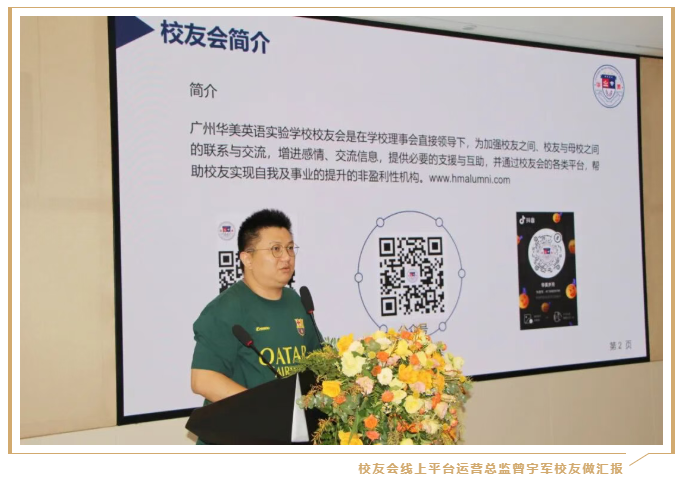 校友会线上平台运营总监曾宇军校友汇报了平台运营成果与未来规划,展现了校友会数字化、社区化的发展新图景。