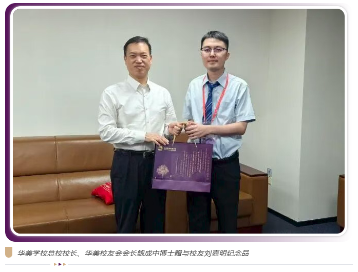 如今鲍成中校长走访校友刘嘉明所在单位,不仅是母校对校友的关怀体现,更是华美教育成果的一次生动展示。