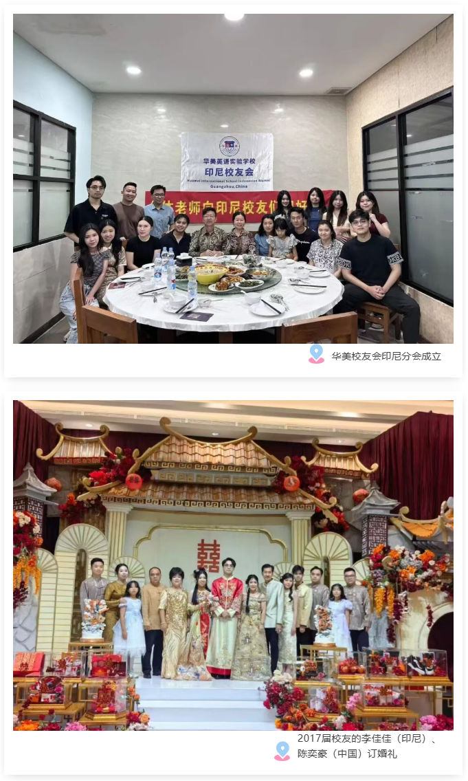 在国庆、中秋双节同庆的期间,华美大家庭的喜悦跨越山海,从珠江之滨传至千岛之国。近日,华美英语实验学校印尼校友会(下称“华美校友会印尼分会”)正式成立,这一暖心时刻与同为2017届校友的李佳佳(印尼)、陈奕豪(中国)的订婚礼喜庆交融,成为华美全球校友网络发展的又一里程碑。
