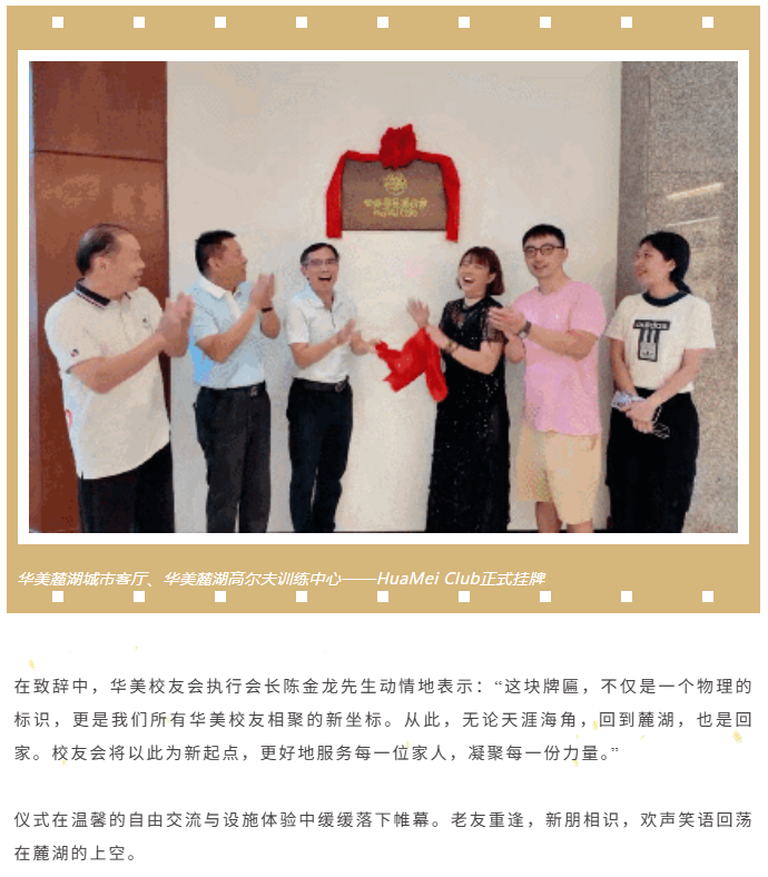 近日,华美校友会在华美麓湖城市会客厅、华美麓湖高尔夫训练中心迎来了一场意义非凡的挂牌仪式。这不仅是一次简单的挂牌,更是华美校友情感凝聚的新起点,彰显校友会服务校友、链接资源的新起点与新气象,是母校与校友之间深情厚谊的见证。